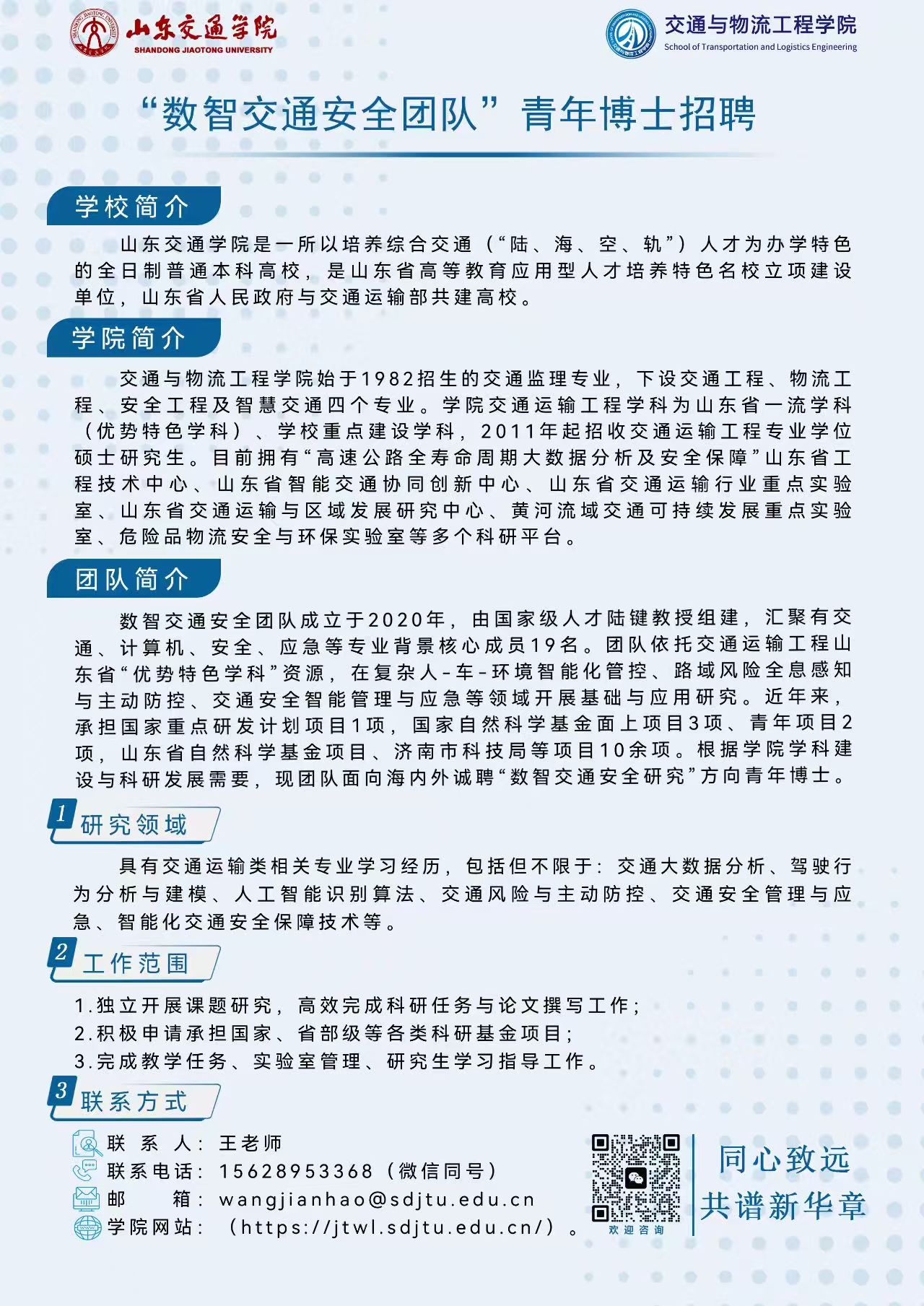 “数智交通安全团队”青年博士招聘