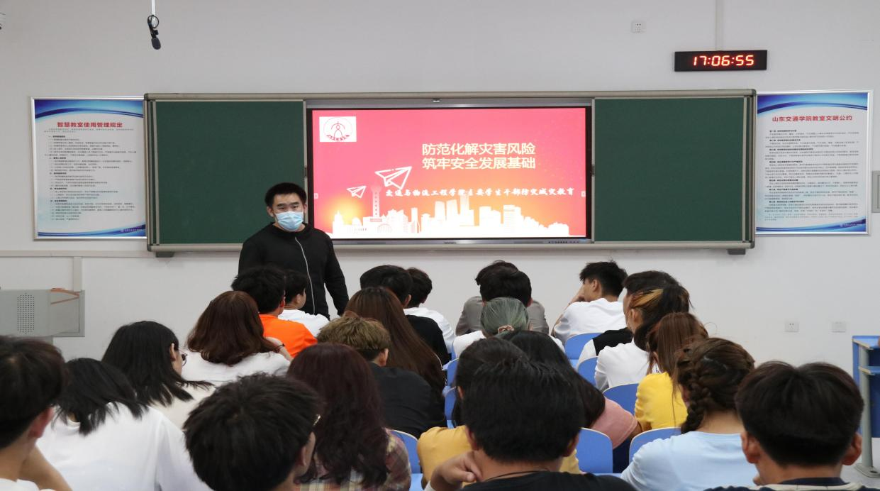 太阳网集团tcy8722于5月12日下午在机电楼A209开展以“防范化解灾害风险,筑牢安全发展基础”为主题的安全教育活动。此次主题教育由学院辅导员赵文龙主持,学院主要学生干部参加。