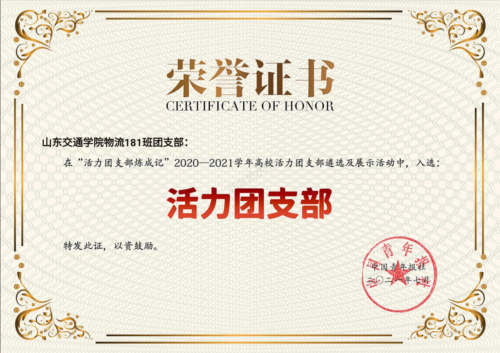 近日,由团中央基层建设部指导,中国青年报开展的“活力团支部炼成记”2020-2021学年全国高校“活力团支部”遴选及展示活动结果揭晓,我校物流181班团支部获评全国高校“活力团支部”称号。