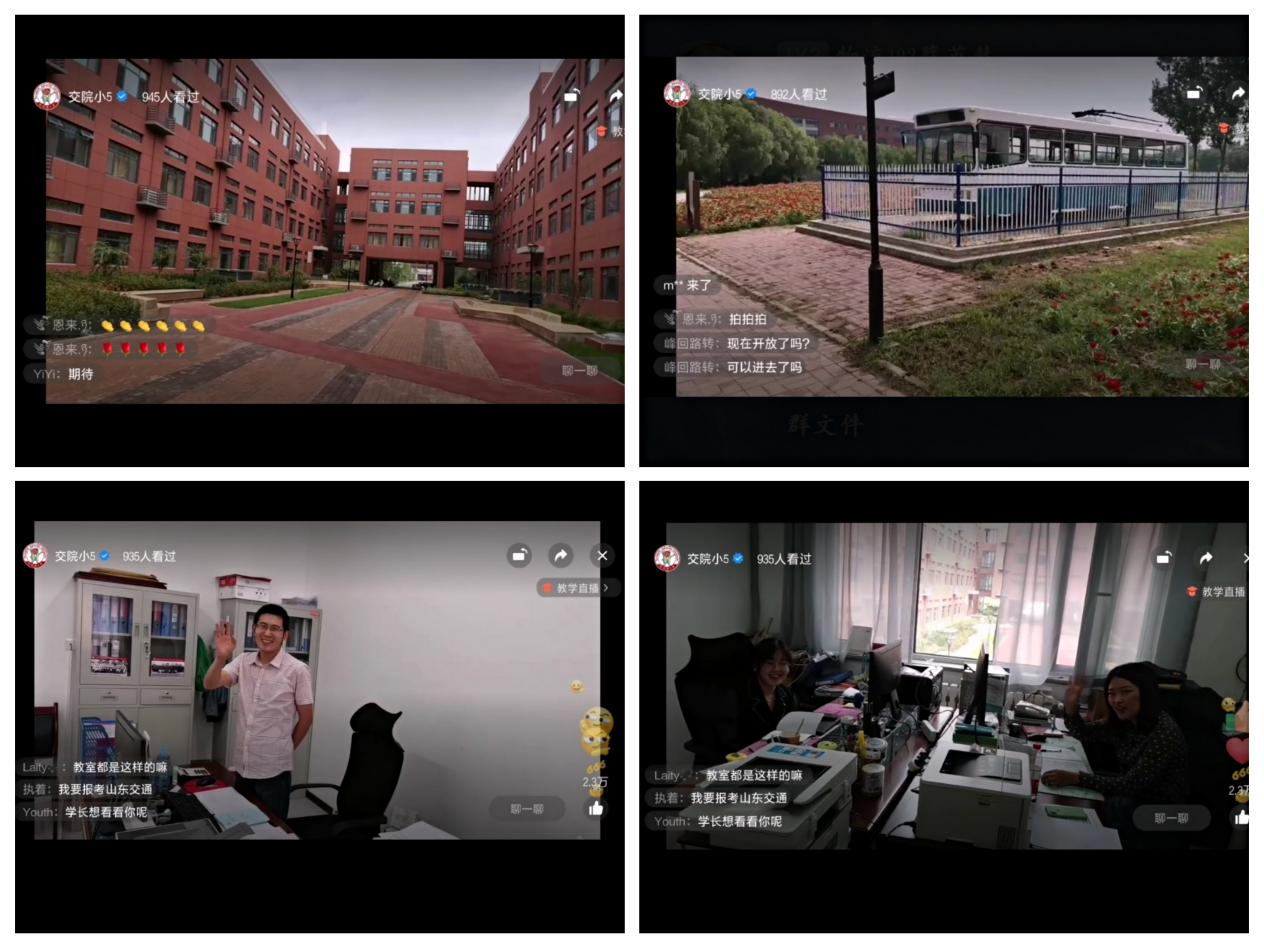 本次直播分为“云游交院”和“交院夜话”两部分。第一部分直播以“云游交院,感受交院风采”为主题,以“东大门(起点)——图书馆——教学楼——报告厅——第一餐厅——地下购物超市——第二餐厅——文体馆——球场、操场——机电楼——明德广场(终点)”为路线,让大家提前感受交院风采;第二部分直播以“交院夜话,解答萌新疑惑”为主题,新生辅导员主要介绍了开学报到的具体事宜,新生班主任助理从学习、生活、军训等各个方面为新生答疑解惑。