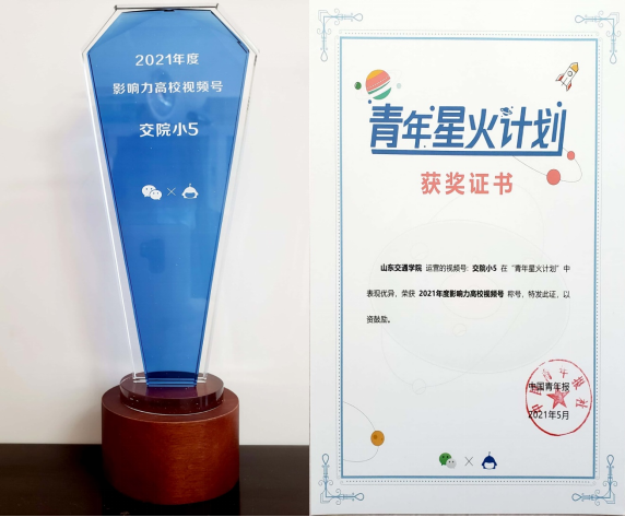 近日,由中国青年报联合腾讯发起的视频号“青年星火计划”评选中,太阳集团tcy8722运营的视频号“交院小5”在活动中表现优异,荣获“2021年度影响力高校视频号”称号。