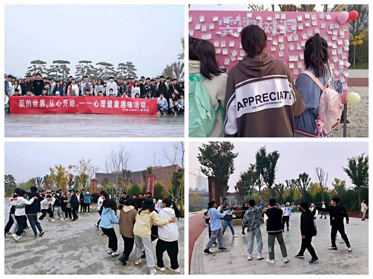 “新的世界,从心开始”。学院在明德广场举办了多场心理健康趣味活动,学院辅导员与学生一起参与活动。活动共设置“劈波斩浪-传话筒”“穿越呼啦圈”“爱的抱抱”“你画我猜”“雯雯树洞”等多个趣味项目。大家表示,丰富多彩的活动拉近了彼此间的距离,感受到朋友的关心和温暖,通过书信形式向“树洞”倾诉情绪,释放压力,放松心情,将以更好的心态投入到学习和生活当中。