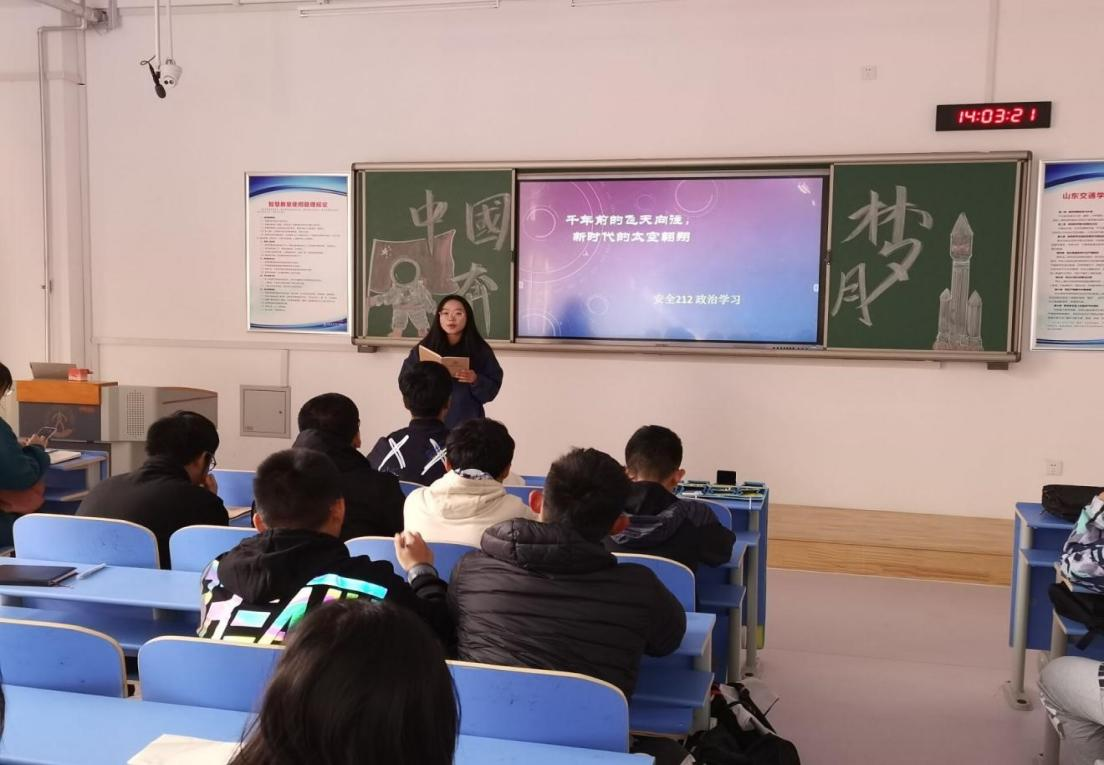 本次学习中,各班团支书讲述了航天技术的变革,组织同学们观看了神州发射视频,回顾中国航天事业的发展历程。