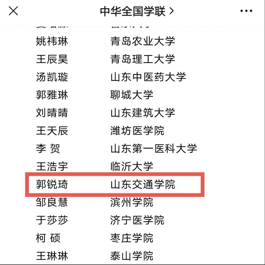 郭锐琦,女,汉族,中共党员,荣获“山东省优秀学生”、“国家励志奖学金”、校优秀共青团员干部等奖项。曾担任学院分团委副书记、融媒体中心主任、全国“高校活力团支部”物流181班团支部书记,是山东省“青马工程”学员和学院理论社团负责人。她作为负责人带队获得了山东省先进班集体、全国百强媒体、全国大学生最美团队、山东省社会实践优秀团队等多项荣誉称号。在校期间,她积极参加志愿服务和社会实践活动,以实际行动践行初心使命,绽放青春最绚丽的色彩。