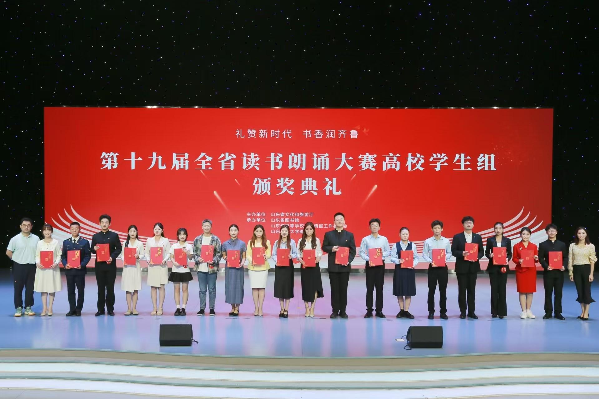 9月14日,“礼赞新时代·书香润齐鲁”第十九届全省读书朗诵大赛高校学生组决赛暨颁奖典礼圆满落幕,我院选手吕政骞从75所高校推送的121组作品脱颖而出,荣获山东省三等奖。