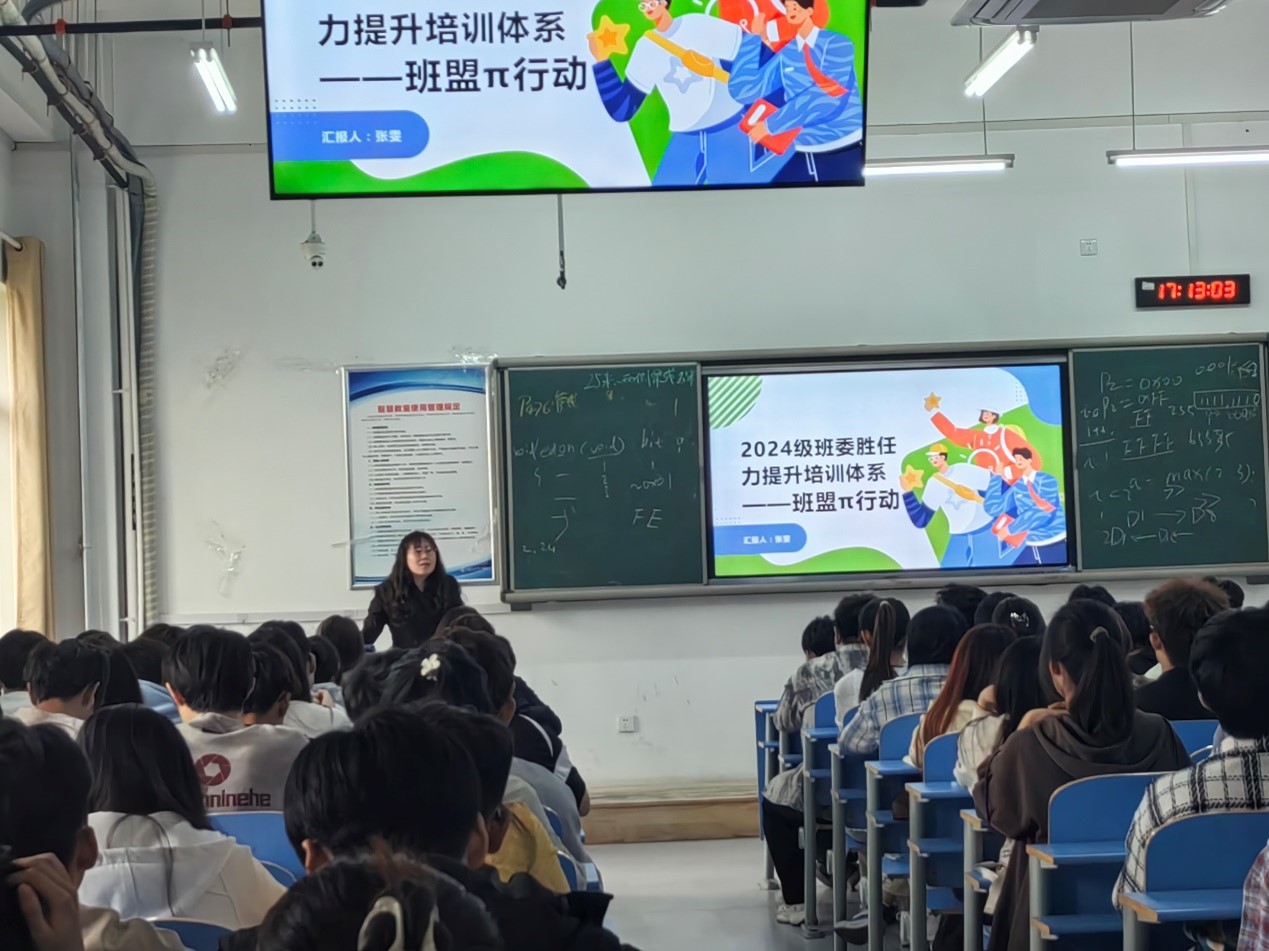 进一步夯实班级管理基础,全方位提升班委的综合素养与工作执行能力,4 月 8 日下午,太阳网集团tcy8722于机电楼 A212 教室成功举办了“班盟 π 行动”——2024 级班委胜任力提升培训会议。本次会议由2024级辅导员王雪怡主持,由经验丰富的2024级辅导员张雯担任主讲,2024级全体班委成员满怀热忱地参与了此次培训,积极汲取知识养分,力求为班级管理注入新活力。
