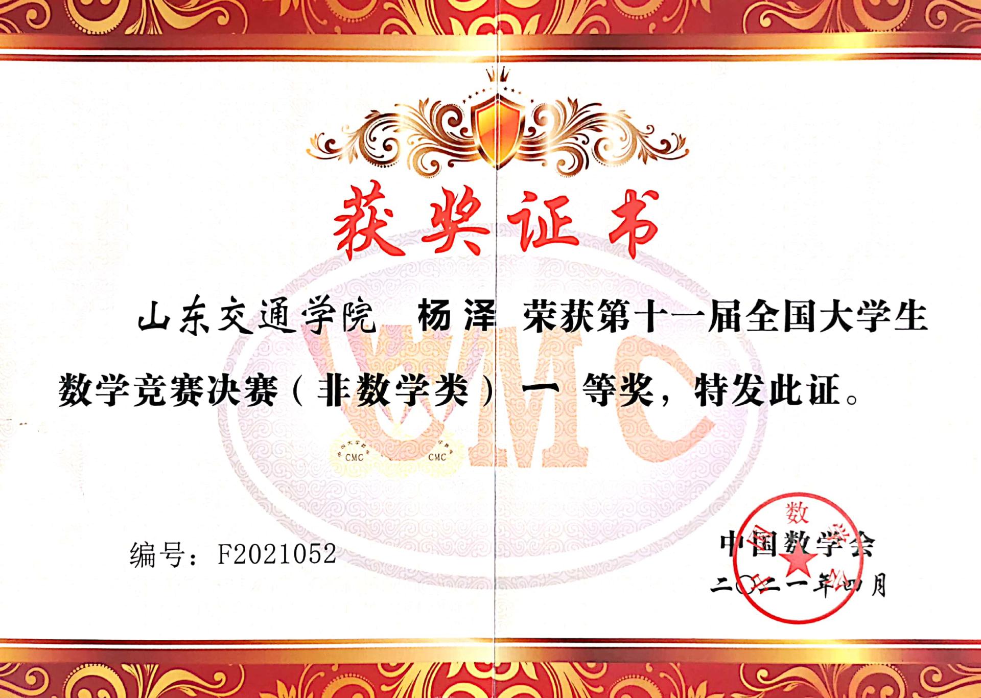 4月17至18日,由中国数学会主办的第十一届全国大学生数学竞赛决赛在武汉大学举行,由理学院教师王晓明指导的我院2018级学生杨泽脱颖而出,获得非数学组决赛国家一等奖。这是我校学生首次进入全国大学生数学竞赛决赛并获奖,是我校参加该赛事以来取得的最好成绩。