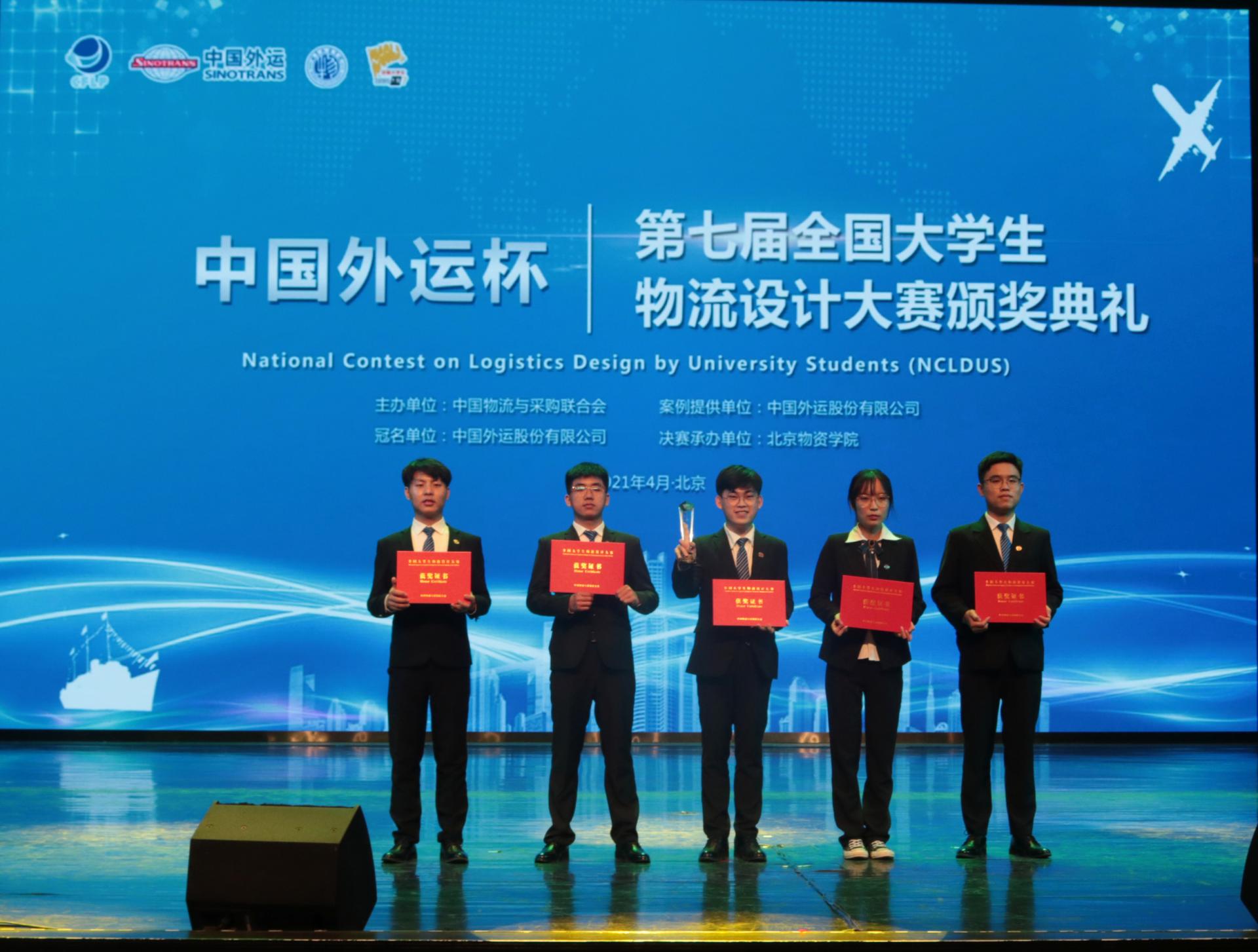 本届大赛自2020年10月启动,我校积极宣传发动、认真组织校赛选拔,参赛作品经历了教师指导、专家打磨、赛前演练等环节,在经过全国初赛、复赛的激烈角逐和层层选拔下闯入最终决赛。决赛采用现场陈述演示作品、专家提问、队员现场答辩的方式进行,我校学生团队针对大赛指定案例做了全局优化设计:通过在国内外物流枢纽的选址,以及全链路产品的设计,为客户提供一站式高效化物流服务;设计了一种新型航空集装器,实现货物在运输过程的单元化与模块化;使用遗传算法和基于容重比的装载方式,合理提高装载率;搭建了物流信息平台,进一步完善现有运易通平台的不足,设计方案获得了评委专家的一致好评。本次大赛还择优30名选手授予中国外运股份有限公司“人才直通计划”,我校5名参赛队员均获得了“直通卡”。