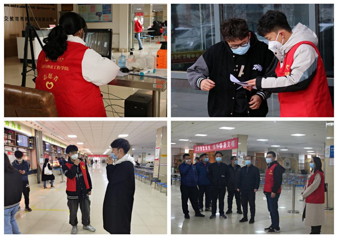 本次活动倡议一经发出,学生党员充分发挥先进模范作用,积极报名参加到本次抗疫志愿服务工作中。学院经过筛选、培训,最终共有80名志愿者入选,其中疫情防控在岗志愿者66人,突发事件应急14人。在此次活动中,志愿者们岗位安排合理,职责划分明确, 分批次、分时间对同学们和餐厅职工开展体温检测工作,引导同学们有序排队,保持一米安全距离,为疫情防控工作提供保障。