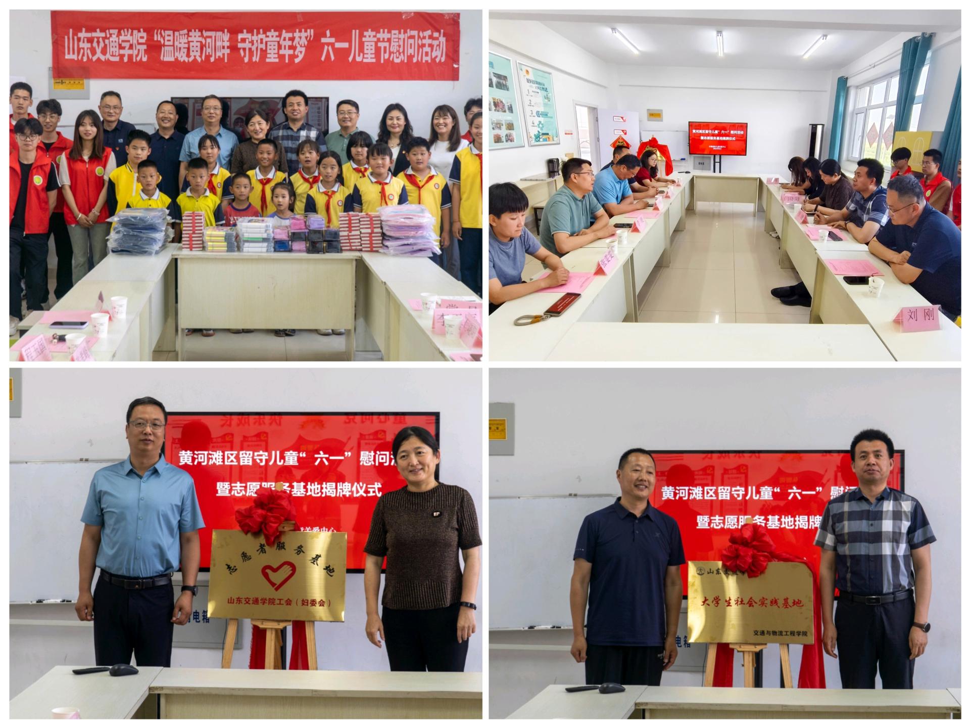 活动当天举行了“太阳集团tcy8722工会(妇委会)志愿服务基地”、“太阳网集团tcy8722大学生社会实践基地”揭牌仪式;闫晓阳代表学校向黄河滩区留守儿童捐赠学习用品。