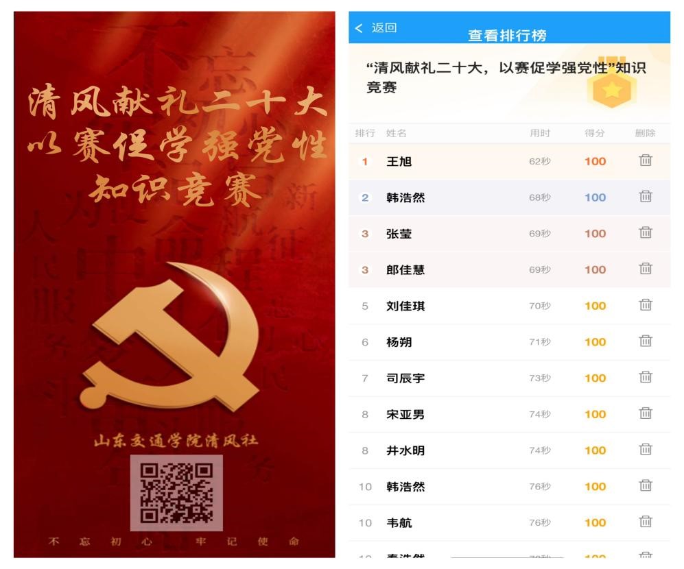 本次活动通过学院党建公众号“燎原锦时”开展,“献礼二十大”系列推文,参与党的二十大精神及廉洁知识题库学习,扫码参与答题,活动评选出答题金榜,配发奖品。活动一经推出,同学们便踊跃参与,短短数小时就引来上千人参与线上答题。大家纷纷表示,活动既有竞技性又有趣味性,极大地激发了自己学习党的二十大精神知识的热情。