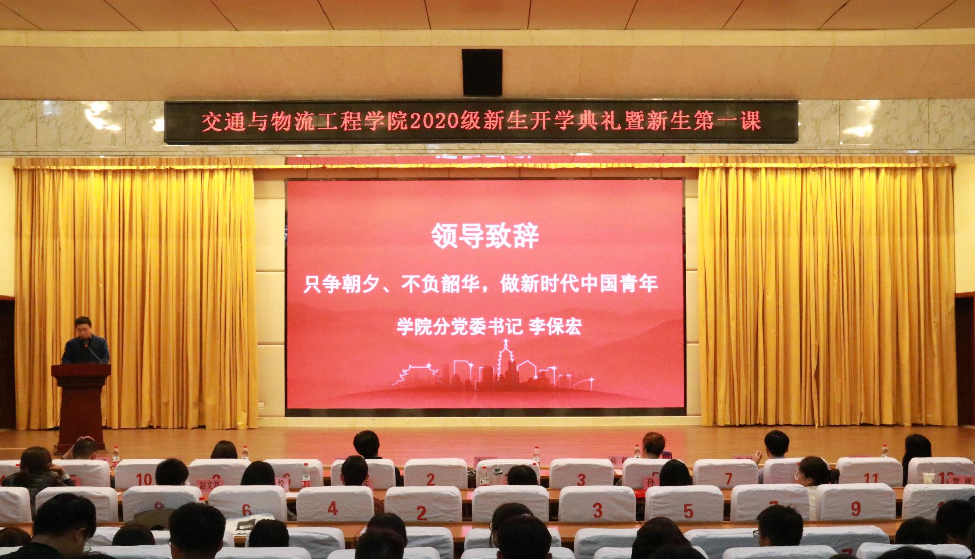 学院分党委书记李保宏代表学院向新同学的到来表示热烈的欢迎。在致辞中,希望同学们争做有远大理想、笃行致远、人格和谐、报效祖国的新时代青年。通过自身努力,成为交通运输、物流管理、安全工程等领域的“交通工匠”。