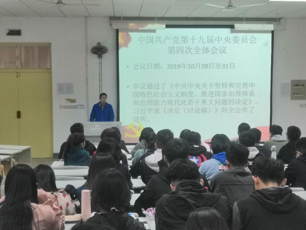 月6日下午,学院组织全体职工党员认真收听收看了中央电视台播放的中国共产党第十九届中央委员会第四次全体会议公报视频,学习《中共中央关于坚持和完善中国特色社会主义制度、推进国家治理体系和治理能力现代化若干重大问题的决定》和《决定》的说明。