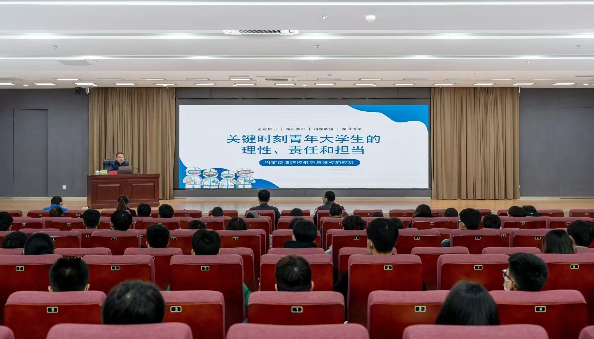 他指出,疫情防控工作是特殊时期学校必须做好、做实、做细的一项重要工作,是学校正常开展教育教学的基础性、先导性工作,也是对全校师生的考验。全校上下要进一步强化思想警醒,聚焦当前疫情形势,进一步筑牢“外防输入、内防反弹”的坚固防线。要做到紧抓核酸检测、健康监测、出校师生管理、返济人员管理“四个关键点”;谨记戴口罩、勤洗手、一米线、常通风、少外出、不聚集“六句关键话”,坚决打赢疫情防控阻击战,履行学校的社会责任。
