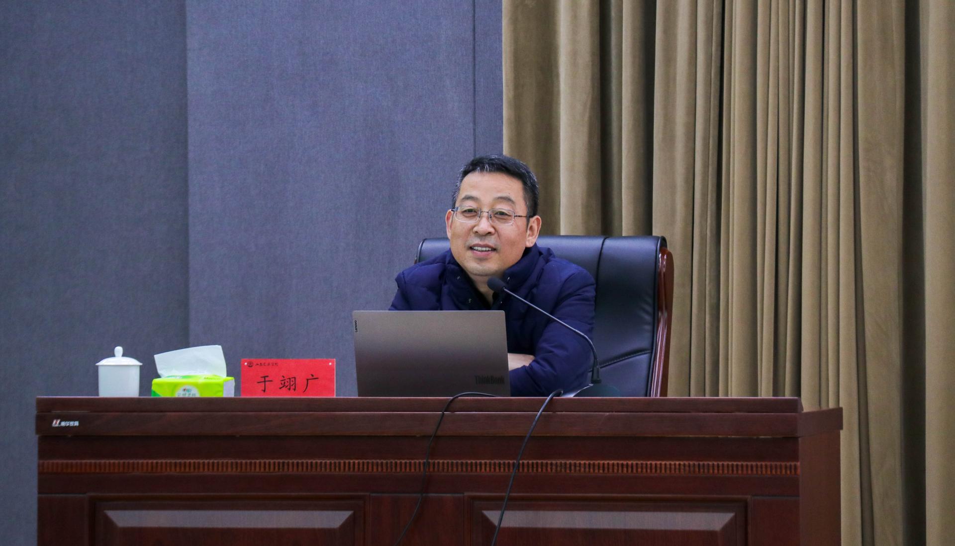 针对校园疫情防控工作新形势,于翊广对我院学生骨干提出三点要求。一是坚定政治底色,不折不扣落实党中央和学校部署要求,在疫情防控工作中,扛起自觉践行“两个维护”的政治责任。二是坚定奉献底色,他鼓励我院学生骨干从我做起、携手抗疫,在疫情时刻有舍去小我为大我精神,用心、用情、用力搭建一个平安校园。三是坚定担当底色,在新时代背景下,青年人要敢于担当社会责任,在服务实现中华民族伟大复兴和构建人类命运共同体的进程中成就一流的新高度。
