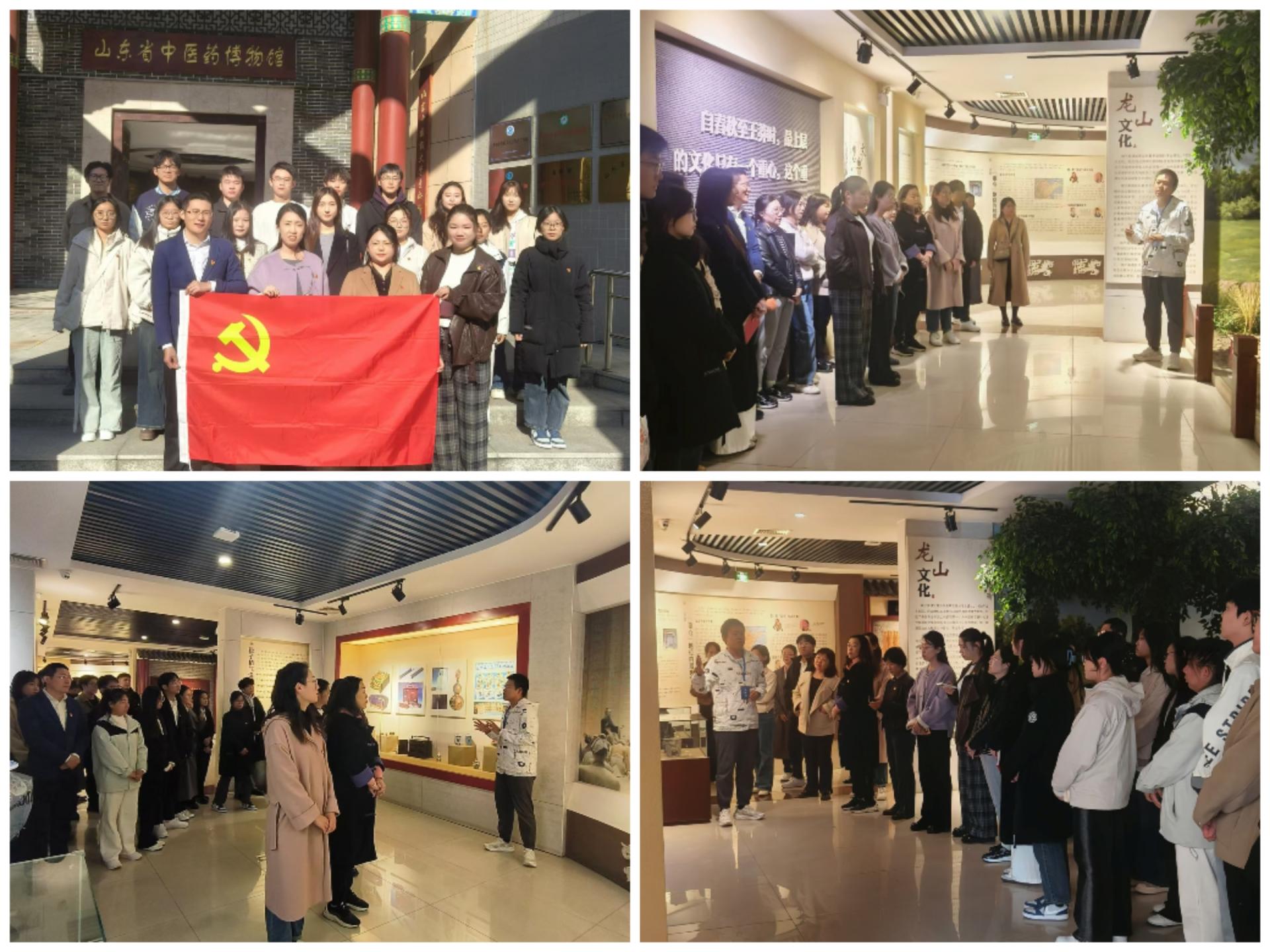 在博物馆一楼,中医文画与山东历史文化相互交融的展示映入眼帘。师生党员们认真观看,深刻体会中医药文化与地域文化的紧密联系。这里的每一幅画面、每一段文字都彰显出先辈智慧,犹如一部生动史书,书写着中医药文化的起源与发展历程,让大家深刻领悟到中医药文化传承的意义。二楼陈列的中医药材典籍和中医器具则是此次参观的又一亮点。典籍仿若璀璨星辰,照亮中医药学发展之路,载着无数先辈对生命健康的探索。而那些古朴的中医器具,带着岁月的痕迹,默默诉说着中医药实践的辉煌历史。