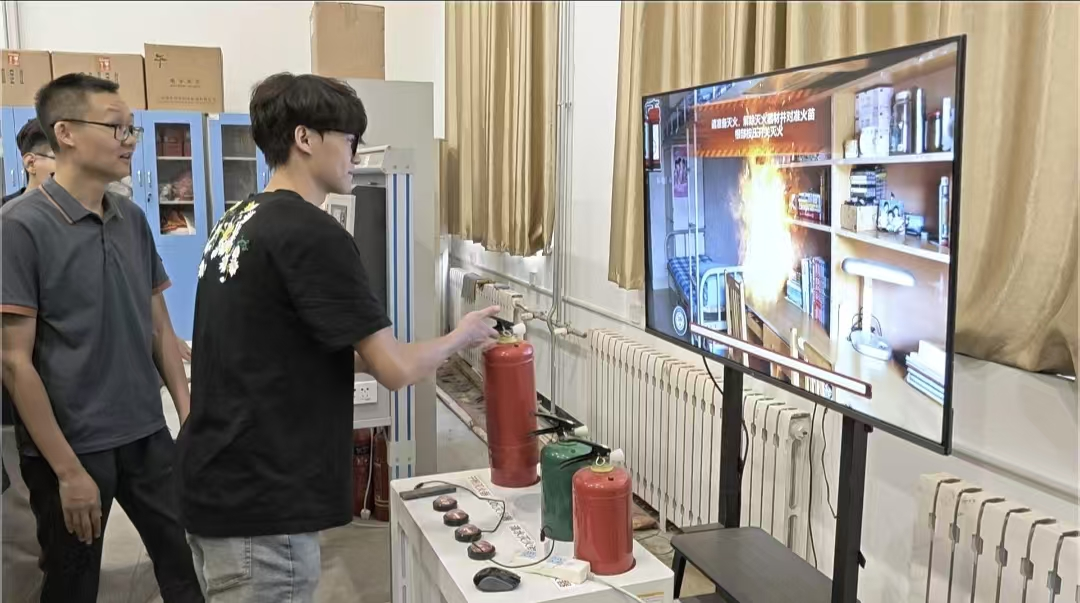 实操过程中,同学们严格执行安全规程,规范使用灭火器材,并以饱满的学习热情和严谨认真的态度,迅速完成火情观察研判、灭火器精准取用等系列动作,面对模拟火情沉着冷静、有条不紊,展现出扎实的理论转化能力与应急反应素养。活动还设置“理论问答+实操纠错”互动环节,通过即时反馈机制巩固学习成果,有效提升学生综合应急能力。