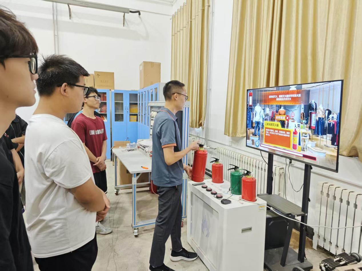 演练伊始,赵全烈结合典型火灾案例,系统回顾了消防安全法规制度与应急管理要点,通过图文并茂的讲解方式,详细阐释干粉灭火器、二氧化碳灭火器等设备的工作原理、操作规范及安全注意事项,并现场演示“提、拔、握、压”四步操作流程,强化学生对消防器材使用的认知。