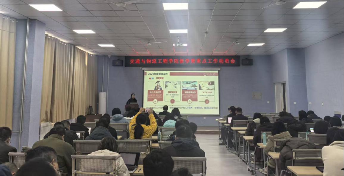 孔伟金在讲话中对学院过去一年取得的成绩给予充分肯定。他指出,交通与物流工程学院作为彰显学校交通特色的学院,必须扛起“交通立校”的使命担当,在学校“十五五”发展布局中找准定位,在学科建设上冲在前、人才培养上做标杆、科研攻坚上啃硬骨头。他强调,要按照“1-3-6-10”工作思路锚定“建设具有鲜明交通特色的高水平应用型大学”目标,坚持“交通立校、学术兴校、人才强校、开放活校、文化润校”发展战略,以硕士学位点申报、卓越人才培养、标志性成果突破等硬任务为抓手,确保“十五五”开好局、起好步。