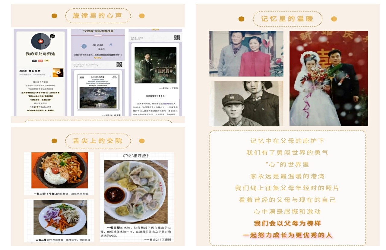 忆成长:美好永驻“心”世界。学院以“心向阳光”心理协会为抓手,以“雯雯的话”公众号为平台,坚持线上线下融合互动,线上推出“舌尖上的交院”“记忆里的温暖”“旋律中的心声”等主题活动,引导学生要懂得感恩、善于发现、珍惜美好;线下开展“打开心灵的围墙——我与我的对话”活动,引导学生打开心扉、悦纳自我。