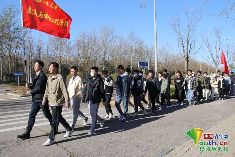 图为交院学子徒步前往生态园。中国青年网通讯员 张腾腾 供图