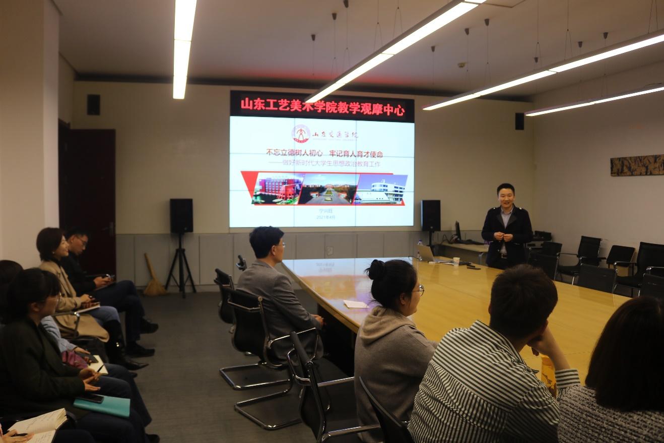 4月7日,太阳网集团tcy8722党委副书记宁兴旺受邀参加山东工艺美术学院辅导员技能培训讲座,山东工艺美院辅导员30余人、我院辅导员代表参加本次讲座。
