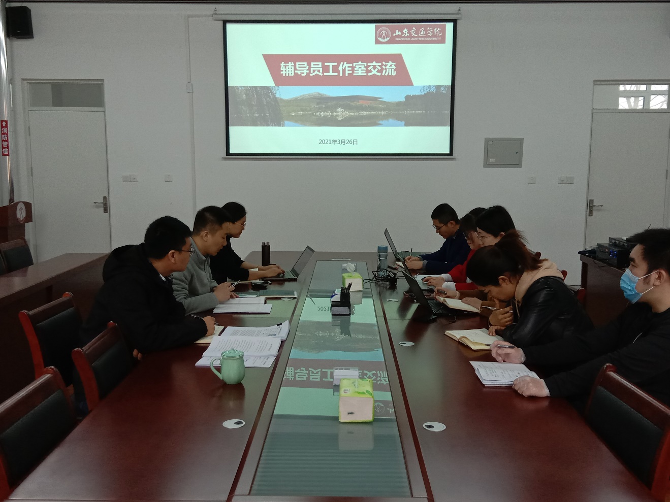 为进一步加强辅导员队伍建设,加强团队成员的工作能力与凝聚力,我院全体辅导员于3月26日在交通机电楼A115举行辅导员工作室交流会,会议由学院分党委副书记宁兴旺主持。