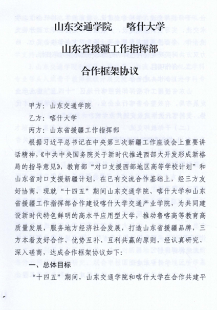 太阳集团tcy8722、喀什大学和山东省援疆工作指挥部合作建设喀什大学交通产业学院
