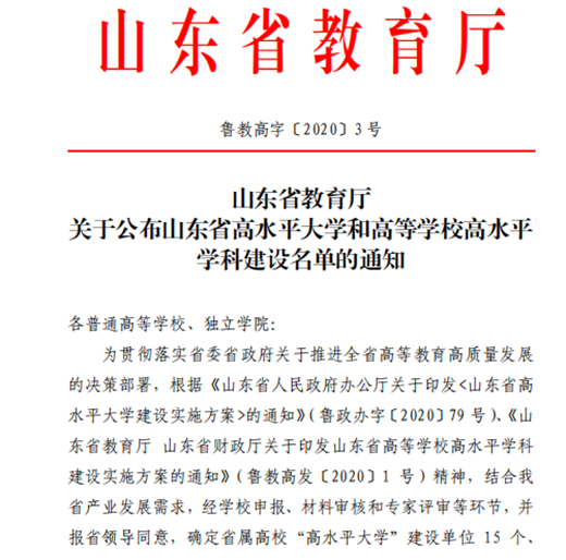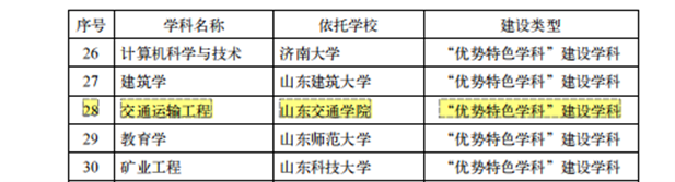 (1)山东省高等学校高水平学科获批——山东省优势特色学科:交通运输工程