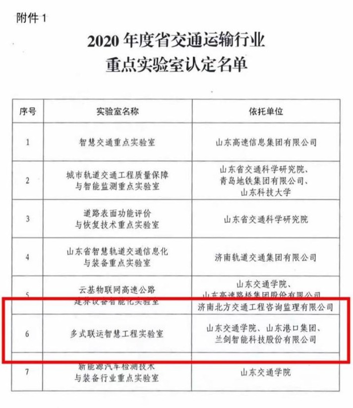 (3)山东省交通运输行业重点实验室——多式联运智慧工程实验室