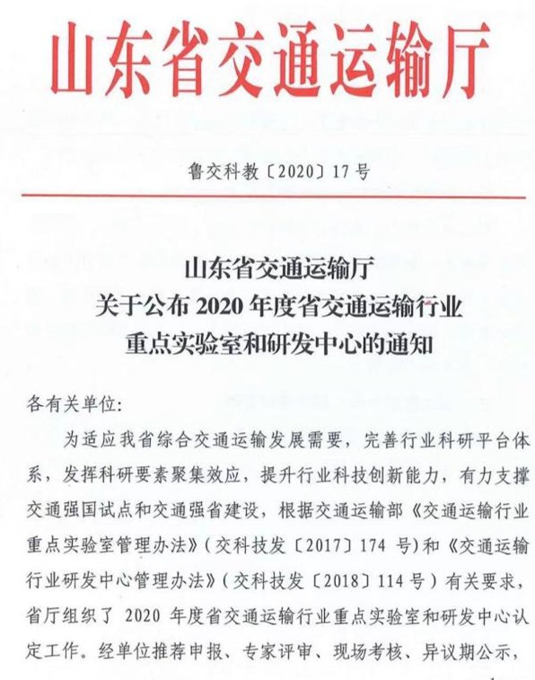 (2)山东省高等学校实验室体系建设——黄河流域交通可持续发展重点实验室