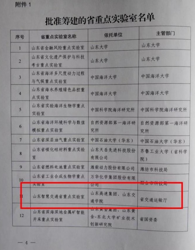 (1)山东省重点实验室——山东智慧交通省重点实验室