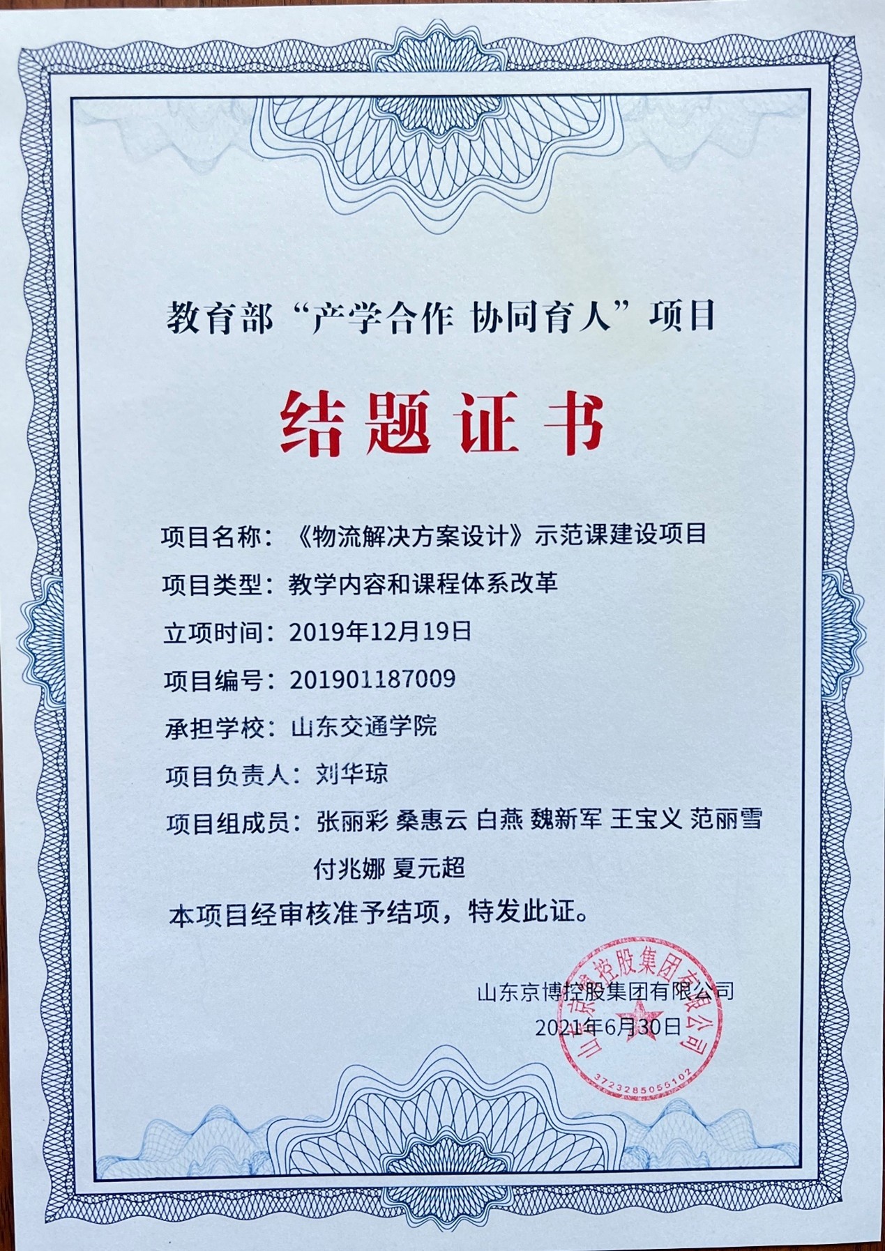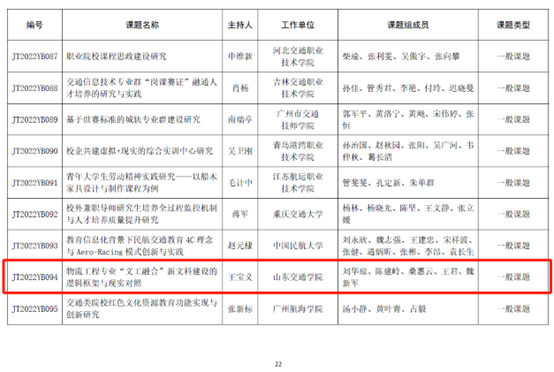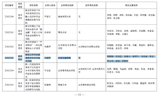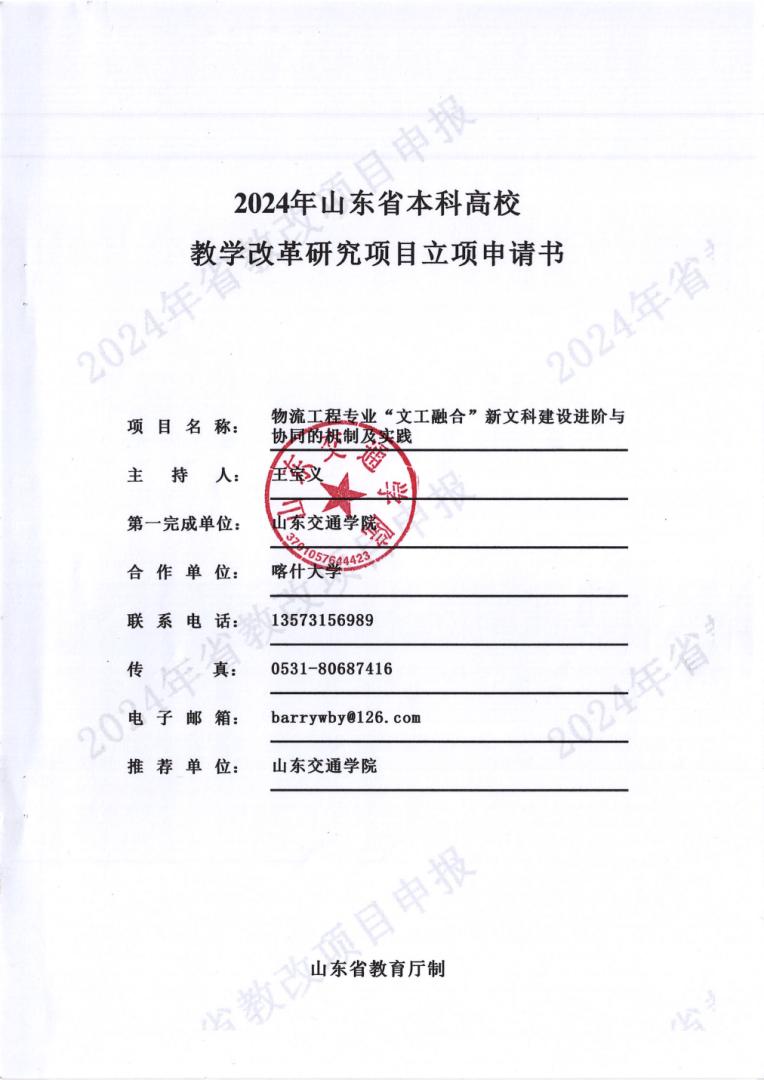 (1)山东省本科教学改革研究项目重点项目——物流工程专业“文工融合”新文科建设进阶与协同的机制及实践