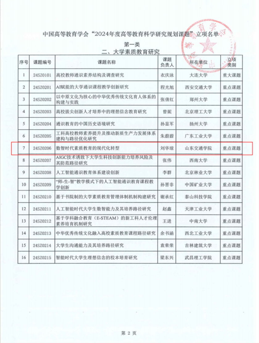 (5)中国高等教育科学研究规划课题——数智时代素质教育的现代化转型