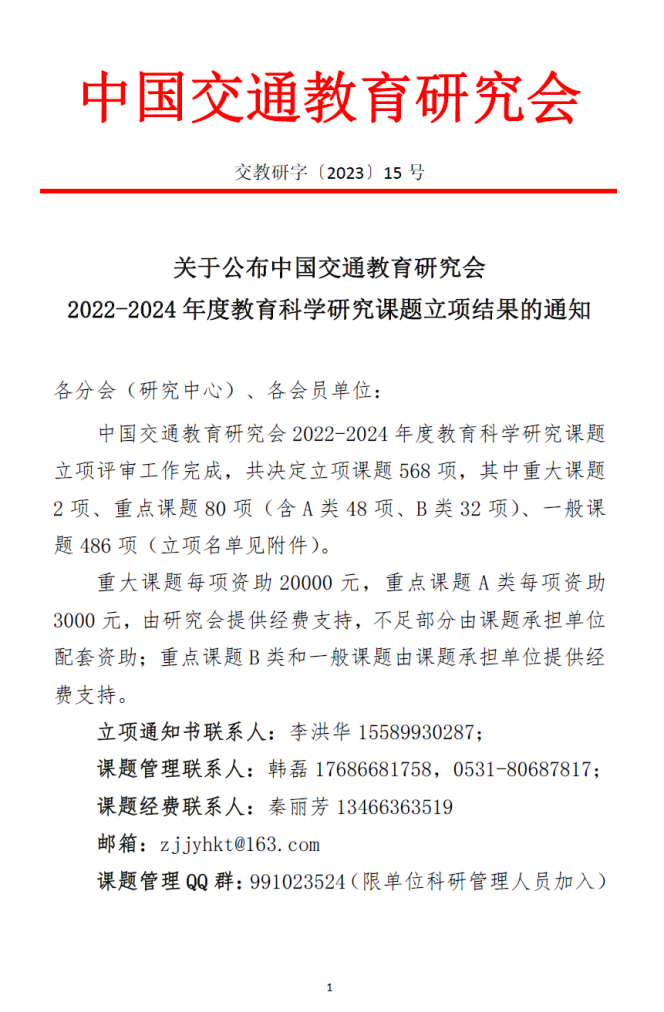 (4)山东省本科教学改革研究项目——基于项目驱动的交通运输类工程应用型人才培养模式研究