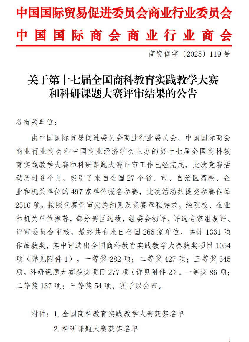 第十七届全国商科教育实践教学大赛和科研课题大赛一等奖4项。