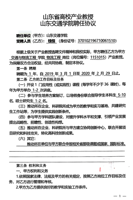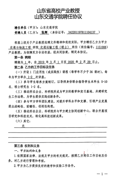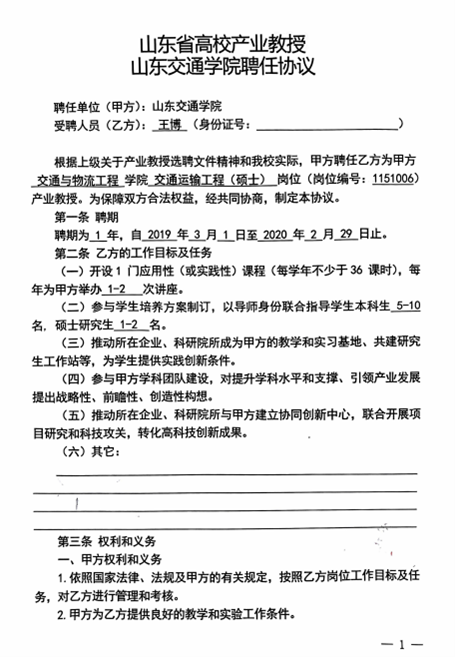 8.2山东省高校产业教授太阳集团tcy8722聘任协议